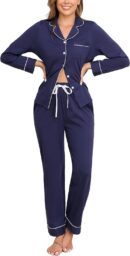 - 【Convenient Button Design】 This soft pajama set features a full button-down top that is easy to get on and off. This great feature also makes this pajama set perfect for nursing newborns and recovering from surgery.