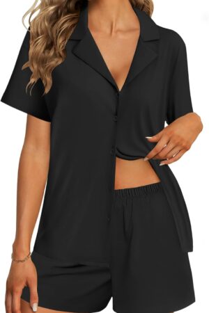 - Summer pjs for women set features cap sleeve top with round neck, drawstring elastic waistband shorts. the pj shorts have side pockets. Simple yet chic.