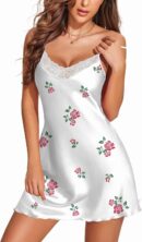 • SATIN NIGHTGOWN – Made of 100% Polyester, satin lingerie nightgown is soft, silky and stretchy. Silk Sleepdress is smooth, lightweight and comfortable enough to wear for night.