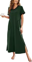 - LOOK ELEGANT & LUXURY: Smooth and soft as silk but more durable, performance in breathable cotton and polyester. Deep V Neckline, Full Length with pockets style of this nightshirt is elegantly oversized, giving you a dramatic and elegant look. Lounge in style and feel like royalty every day in this soft and comfortable sleeping dress.